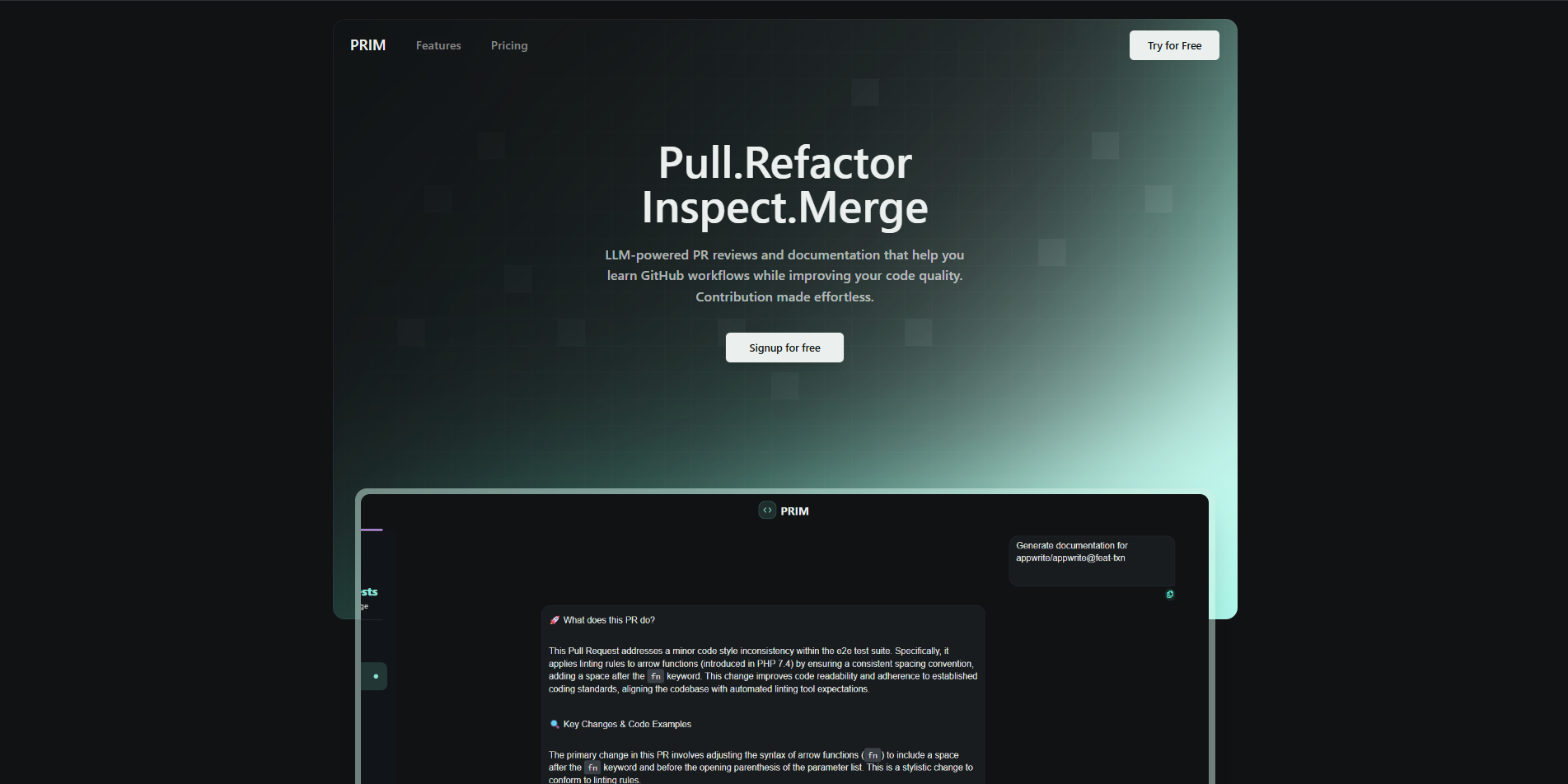 A github assistant web app that helps you contribute better in github by documenting your PULL request, Reviewing PRs etc.